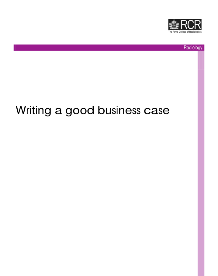 Radiology is and always will be in a constant state of flux. Technological developments, changes in patient, political and clinician perspectives and advances in knowledge and disease processes ensure that the need for radiology services is always changing. Radiology must respond with robust business cases for projects which appropriately meet the needs while best using the necessarily limited capital and revenue resources. To assist members, The Royal College of Radiologists (RCR) has provided an update to our 1996 document Clinical Radiology – Writing a good Business Case, which has now been withdrawn.