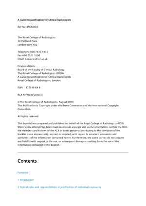 This document does not represent a statement of College policy, it provides an explanation about the regulations to assist members and Fellows in defining local policies and practices to provide an effective and appropriate service in the context of the legislation. The text outlines the position of the employer, defines referrers, practitioners and operators and discusses the process of justification, giving suitable sample cases to highlight the issues.