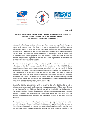 Joint statement from the British Society of Interventional Radiology, The Vascular Society of Great Britain and Ireland and The Royal College of Radiologists on the new Vascular Surgery specialty.