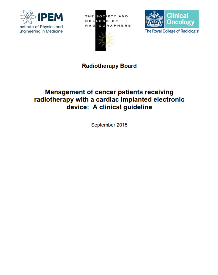 The number of cancer patients with cardiac implantable electronic devices (CIEDs) receiving radiotherapy is increasing. 2-4 There are two main categories of CIED: permanent pacemakers and implantable cardioverter defibrillators (ICDs). Electronic monitoring devices (eg implantable loop recorders) have no direct connection to the heart and are not covered in this guideline. Most permanent pacemakers (referred to as ‘pacemakers’ in this document) are implanted in patients who either have inappropriate bradycardia, or who are at